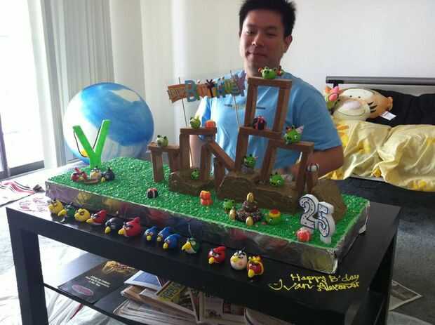Hacía enojado aves torta de para mi mejor amigo. Él pidió este pastel durante 2 meses antes de su cumpleaños. Por lo tanto, lo hice para él. Juego de Angry birds tiene un montón de temas, seasons, rio, etc.. Uno que no cree el tema de cumpleaños. Para crear el nuevo tema de aves enojado, cumpleaños como ves en las fotos.