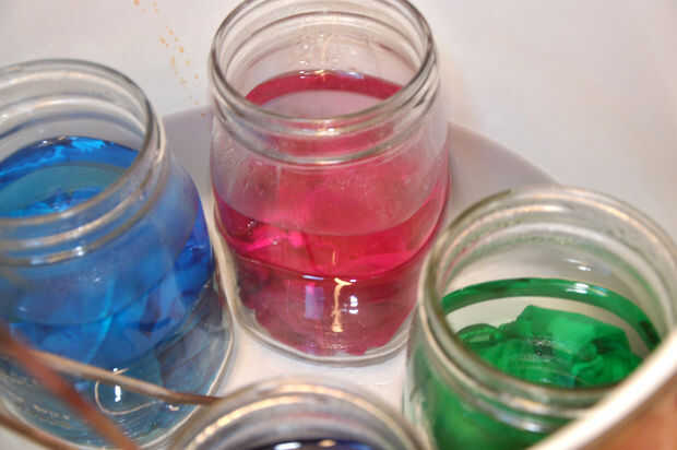 Una vez que el agua en los recipientes es sobre todo claro, apaga el fuego bajo la olla y todo lo cool. Esto puede tomar una o dos horas. Los frascos están demasiado calientes para sacar y el último bit de color se escape como el agua se enfría.