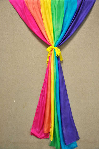 Ahora tienes un arco iris de 6 color listo para jugar con pañuelos de! ¿Cuáles serán tus bufandas convertidas en? ¿Pañuelos de pirata? ¿Faja de la princesa? Tome a 5 amigos y una carrera arco iris. Los niños sólo estará limitados por su imaginación!