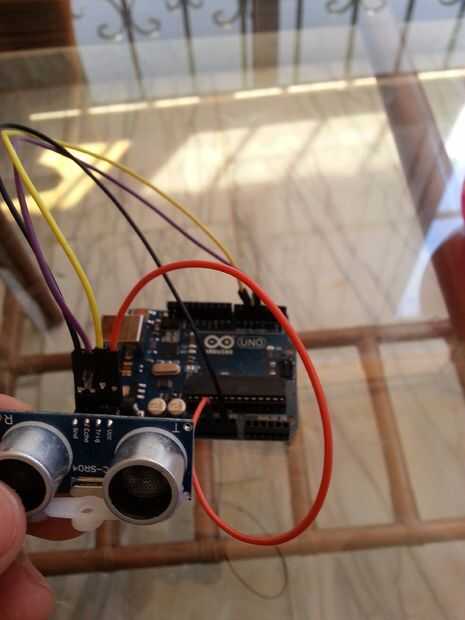 simple conectarse a tierra y cables de 5 voltios su ultrasonido y colocar 2 alambres a su Trig y puertos de Echo, he usado los pines 4 y 5 anteriormente