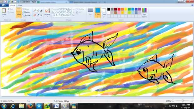 Seleccione pinceles---> haga clic en caligrafía cepillo de 1 o 2--->... seleccionar pintura color 'negro'... Aquí señalo algunos peces. dibujar primero uno y luego otros. uso de spry---> como una burbujas. ... guardar como un formato de name.jpg