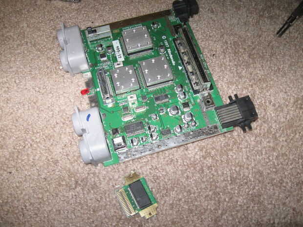 También porque es tan grande, tomé la cáscara apagado del chip de memoria para hacer las cosas más pequeñas. IMPORTANTE: Asegúrese de hacer una nota en alguna parte en qué dirección poner esto en el!!! Yo lo tenía en hacia atrás al principio, y por qué se fue el fusible en el cable de alimentación. Pensé había frito otro sistema al principio, y se me hizo triste. Por suerte he desenchufado todo e intentado otra vez más adelante. Me enteré de que si usted mira de cerca, puede decir qué dirección poner el chip de memoria, debido a cómo afrontan los conectores. Después de dejar desconectado por un tiempo, y el chip de memoria en los bancos, todo funciono!