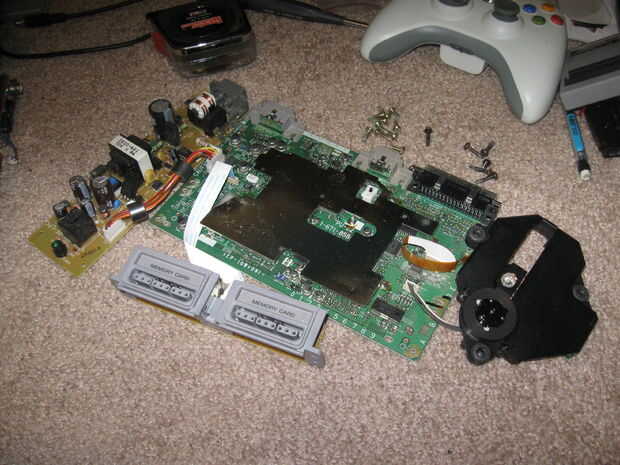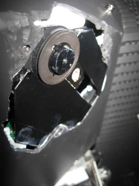 Lo primero que hice fue probar y asegúrese de que el sistema ha trabajado fuera de su caso. Para evitar la electricidad estática de mi alfombra, todo lo pongo en un pedazo de cartón. Si no se enciende, no se preocupe. Hay un pequeño botón en el tablero principal que le indica al sistema cuando la tapa esté cerrada. He marcado en mis fotos. Para solucionar este problema, acabo de poner un pedazo de cinta Scotch sobre él. Ahora debería funcionar sin un caso muy bien. En cuanto al disco usted practicar con, utilice un disco basura/extra/ilegible. Este disco va ser rasguñado para arriba (probablemente muy rayado) cuando haya terminado.