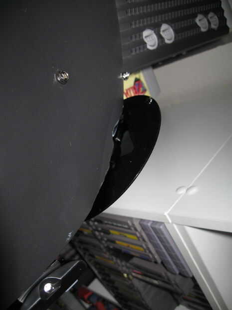 Corte el agujero era realmente tipo de difícil también, porque es una forma inusual. Tuve que utilizar mi taladro, dremel y rompecabezas para obtener este agujero para trabajar bien. El resto fue muy fácil. Al principio, iba a montar con tornillos, pero no importa cómo duro he probado, no sería girar mi disco de práctica. Ya que no estaba lista para definir esta parte en lugar de forma permanente, sin embargo, trató de mantener en ciertos ángulos. Después de varios intentos, encontré el ángulo apropiado para el lector de disco para que mis discos se giren libremente. Me di cuenta cuando llegó el momento para montar esto, sólo pude poner un montón de epoxy en él y mantener en su lugar por un tiempo hasta que seca.