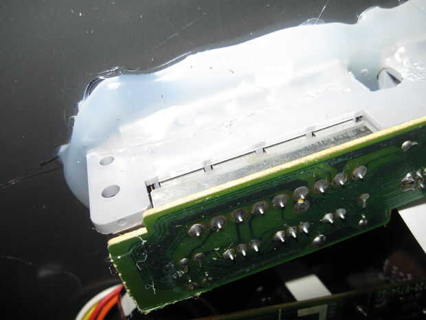 Por si acaso, después de se terminó, apliqué más epoxi para que no mueva nunca otra vez. Esta vez tuve que ayudar a endurecer en la posición correcta.