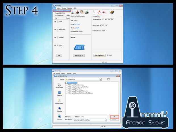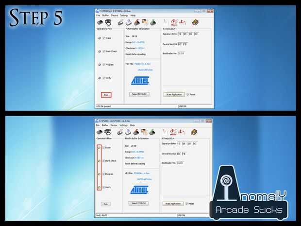 (Bien la primera vez que lo hice todas las bolas no enciende mi palo dejado de funcionar y la verde. La razón era que me había llevado de conectado a VCC en el tablero de ps360 +. Si esto sucede, no se asuste. Asegúrese de que no tener otros mods cualquier energía a partir de la VCC, incluso uno conectada LED botón o una tapa de la bola detendrá el chip de re escritura. Simplemente desconecte nada energía y luego volver aunque el proceso FLIP. Si todavía no funciona, entonces usted puede tomar todos los cables de la Junta, dejando sólo el botón de inicio. Enchufe la placa en el ordenador manteniendo pulsado el botón y la tapa otra vez, a re escribir la Junta y trabajo. Nunca he tenido un ladrillo realmente en mí siempre.)