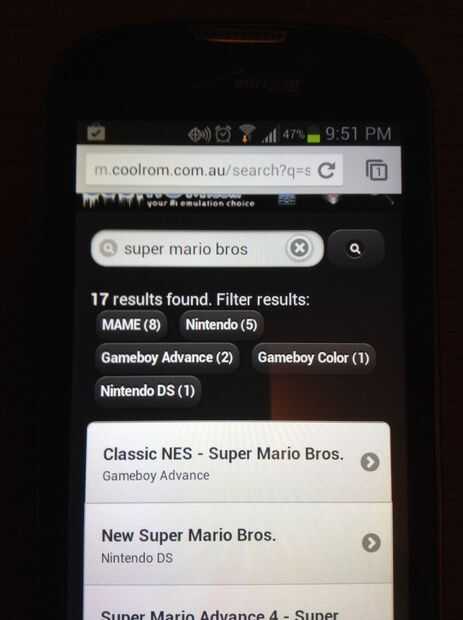 A continuación tienes que pulse el botón de resultado superior titulado Super Mario Bros.