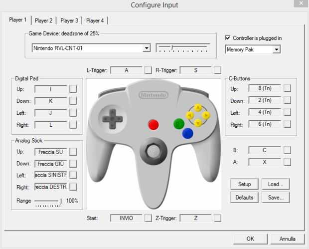 Lo último que debemos hacer es asegurar que los controles se asignan a botones de la derecha en Project64.