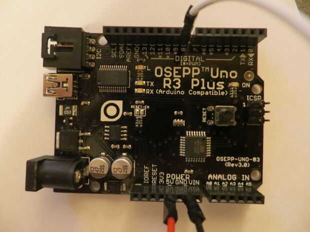 Conecte los cables como sigue a la placa Arduino.