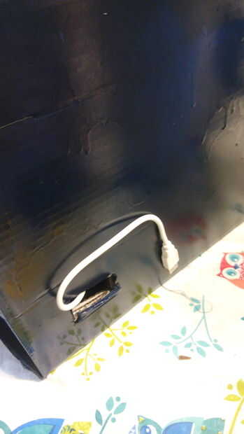 1. Tome el adaptador controlador y su conector USB a través de la abertura cortar antes y fuera de la puerta en el lado del hilo de rosca.