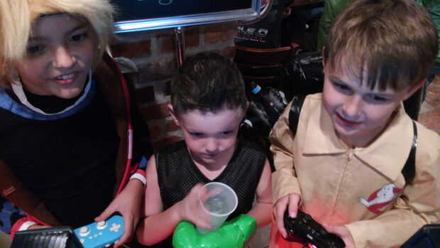 Pasamos de maravilla con este traje! Tiene toneladas de elogios y se les dijo que tenía el mejor disfraz que jamás. Personas también me recuerdan del año pasado cuando era el juego de arcade de pacman. Era también gran entretenimiento para los niños en las largas filas.