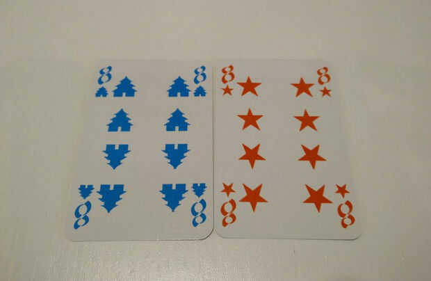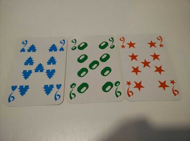 - La persona que tiene la tarjeta de Mah Jong en este momento puede comenzar la ronda y conduce el primer truco jugando cualquier combinación de cartas (ver ejemplos en las fotos de arriba):- tarjeta única (p. ej.: 3)