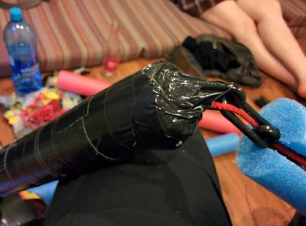 Usé 4 secciones de relleno. Un pequeño derecho en la bola para cubrir los dos enlaces que son atados juntos. Larga, una corta y una larga en ese orden. He encontrado que esto proporciona el mejor equilibrio entre no poder conseguir envuelto alrededor de un personal cuando están bloqueadas y ser capaz de hacer pivotar alrededor de un bloque para golpear al jugador.