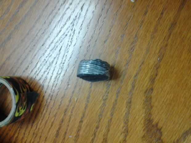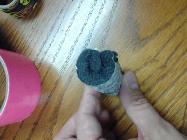 1. Tome una longitud corta de aislamiento de la pipa y con razón rodarla en un 'enchufe' aprox 3/4"(20mm) de diámetro. Puede utilizar el diámetro de la tubería de PVC para la referencia si es necesario. Enrolle el enchufe en cinta (utilicé cinta de embalaje de fibra reforzada, pero puede usar cualquier cinta).