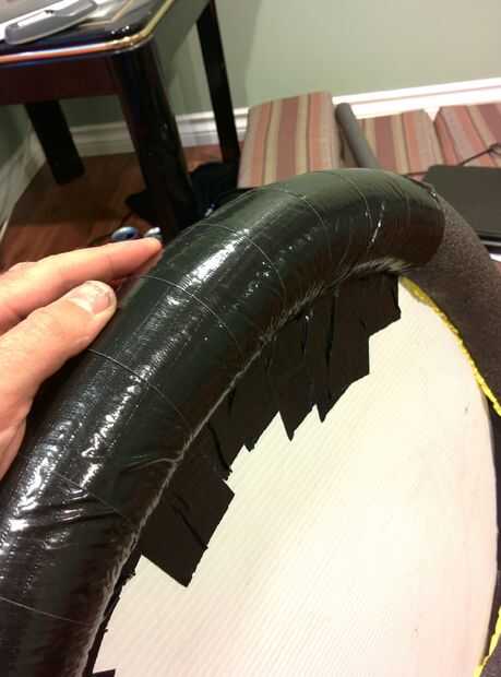 Comenzar con una cinta justo sobre el borde alrededor de todo el camino. Esto tendrá el efecto de la nivelación de la base y le ayudará a evitar cualquier plástico fragmentos de lo que es a través del acolchado en el caso de una interrupción grave en el escudo durante el combate.