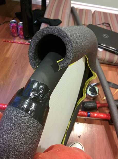 Luego tomar el aislamiento de la pipa y el diámetro más pequeño uno alrededor del borde, seguido por el más grande de la cinta.