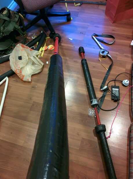 Uno de los longswords necesita un mantenimiento, así que lo desgarró y lo pones de nuevo juntos para demostrar cómo suelen construir armas de Jugger.Para este proyecto necesitarás:conducto de PVC de 3/4"(20mm)3/4"(20mm) aislamiento de la pipa de