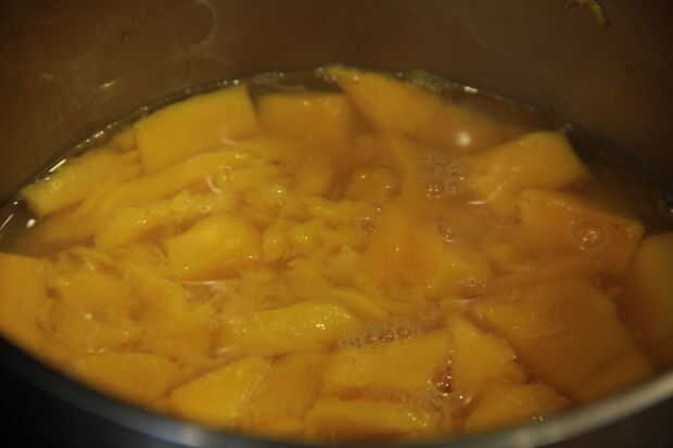 - Poner la fruta en una olla; Añadir agua hasta justo cubrir. Esto es para que accidentalmente no freír tus frutas.