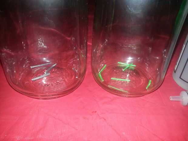 Sabía que 10mm sería una muy pequeña cantidad, como tan pequeño es difícil de usar, así que escala hasta: 100 m m a 100mL. Usando el poder de conversión, convierte 100mm a aproximadamente 4 pulgadas. Llegará a saber con jugo de ABS, muy poco es exacta. Como el equilibrio cuando se tiene un tamaño diferente de 3 mm. Así que después tuve 4 pulgadas pedazo de 3mm, usé para medir y cortar dos piezas de lo 1,75 mm ABS. Que, otra vez yo sé, no es una medida exacta del peso a peso, pero está lo suficientemente cerca. Para ayudar en las piezas de disolución, cortarlas en trozos más pequeños que se sumergen completamente en mi acetona. Después está cortadas para arriba, añadirlos a sus propios tarros individuales.