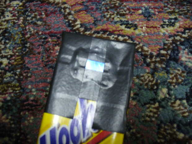 Ahora que tenemos el cuadrado, necesitamos esta cinta por encima del orificio de 6 mm. Es importante que sólo cinta la Plaza hacia abajo a lo largo de los bordes. No no totalmente cubierta de aluminio cuadrado-estamos empujando un agujero más adelante.