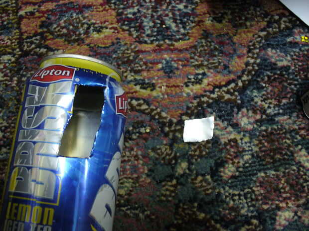 Tome su bebida de soda y alternativas puede y recorta un cuadrado. Con toda honestidad, no importa qué tamaño de un cuadrado cortado, salvo necesita ser mayor de 6 mm cuadrado cortado anteriormente. Realmente no medí a mina, pero creo que era un cuadrado de 12 mm, más o menos.