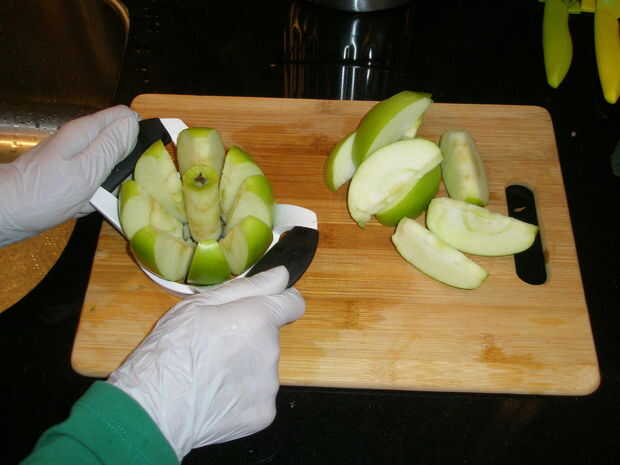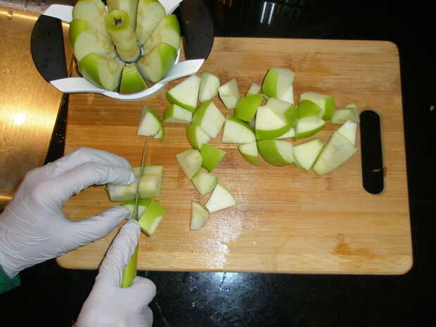 Para el VRT400 de Omega, base de nuestras manzanas y luego picarlos en trozos pequeños.