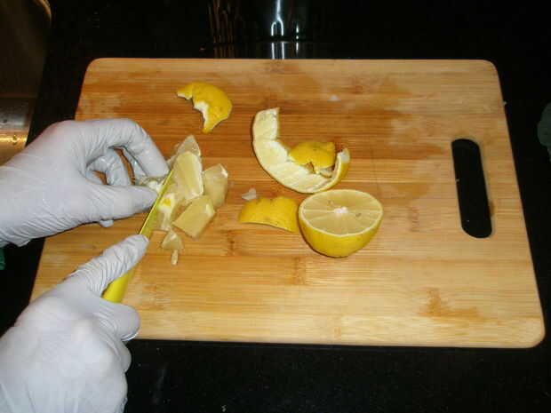 Limones se cortan también en trozos pequeños. Si desea un sabor más dulce de limón siempre mantenga las cortezas de limón.