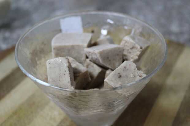 3) una vez hecho, sacar del congelador, picar en pedazos y Njoi!
