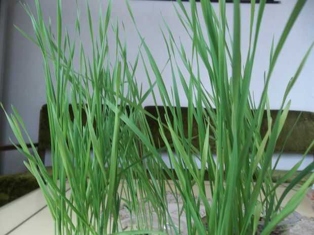 me vino la idea a crecer mi propio wheatgrass después de comprar una hierba de gato crecimiento kit para mi gato. Es bastante fácil, crece bien en el interior y no un montón de suministros son necesarios.Es una bebida popular en barras de jugo de whe