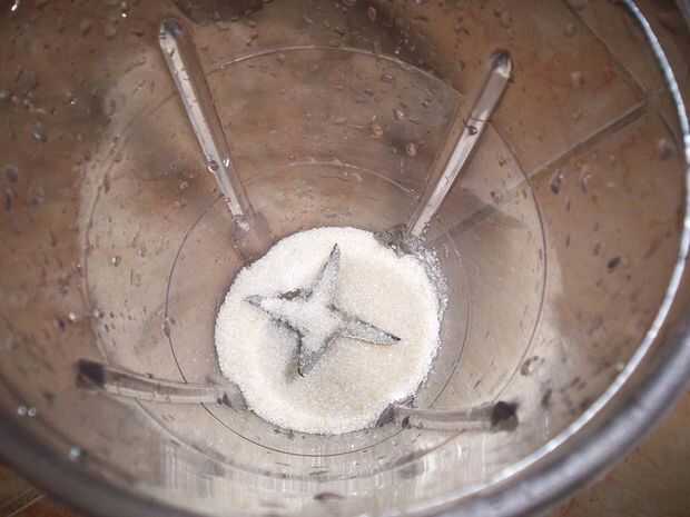 Poner el azúcar, el agua y el pasto de trigo en la licuadora.