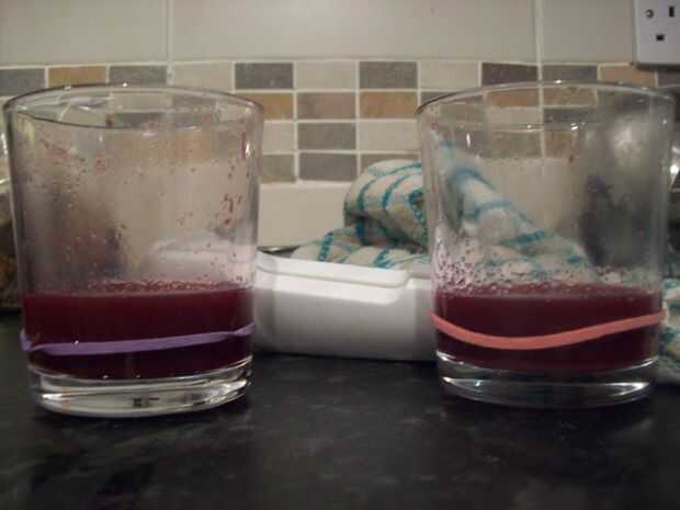 He marcado había dos copas y puso jugo azucarado en uno y no azucarado en el otro.