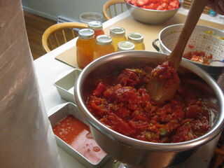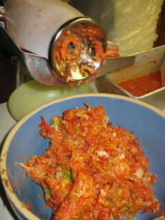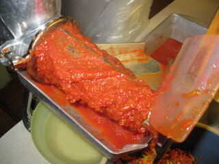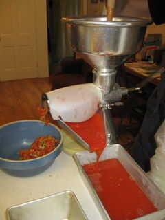 Cuando las verduras han sido exprimidas, enviar las semillas y las pieles a través una vez más. La salsa ya es bastante gruesa pero se puede cocinar incluso más en una olla. Añadir lo que te gusta de condimentos. Trate de hacer la salsa de pizza y utilizar algunos esta noche y poner un poco en el solo uso recipientes de plástico o bolsas de congelación de la cerradura del cierre relámpago y congelar para más adelante.