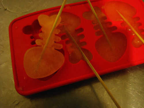 Después de 2 horas en coche hacia fuera el molde del congelador y expulsar a los hielos del molde.