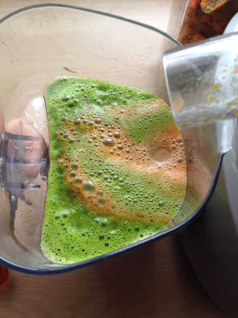 A través de todo en el extractor, servir inmediatamente o servir fría de la nevera.