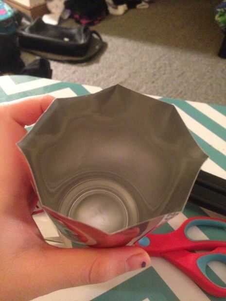 Doblando a borde de la lata 4 veces, hacer 8 pautas para siguiente paso.