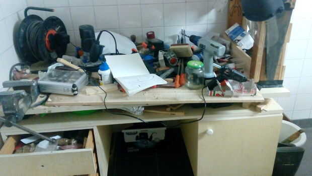 mi taller de la tienda entera era un desastre después de mi último proyecto tuve que limpiarlo antes de que yo podía ir a trabajar