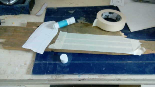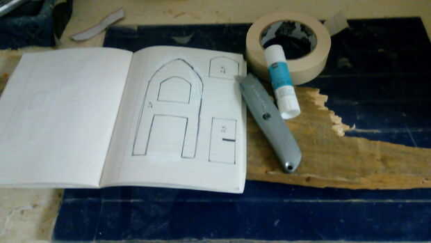 Utilicé una parte de una plataforma para la madera. Para pegar el plan en la madera utiliza una cinta de pegamento stick y pintores esto hace muy fácil de pelar el papel después de que haya corte.