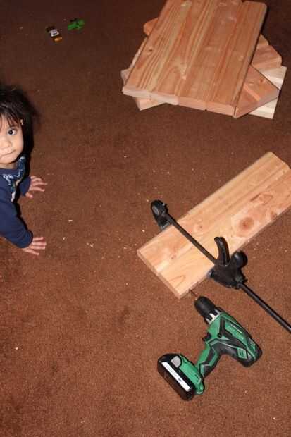 Luego Taladre orificios de 1/4 profundidad, donde los tornillos se van a los lados usando la broca de 3/8. Consulte el cuadro para la colocación del agujero, no sé las medidas exactas, realizadas por ojo balling