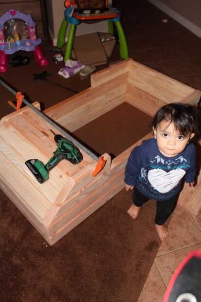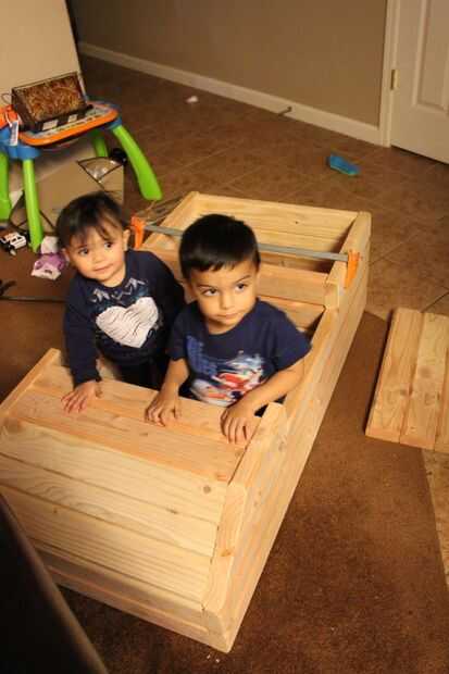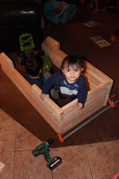 Comienzo comienzo la pieza posterior y los lados juntos, tome usted tiempo asegurarse de que todos los bordes coincidan, fije con los tornillos. Luego el frente, el mismo método. Luego paso a la pieza media, terminando la caja cama/juguete del carro. El siguiente es el asiento, coloque aproximadamente 2 pulgadas de la tierra. Luego la parte superior, establecer alrededor de 1,5 pulgadas de la parte posterior de la pieza lateral de 12 pulgadas. Esto permite que el parabrisas. Pasar a la campana, debe ser un buen ajuste entre la frente y las secciones superior, arenas si es necesario. Como se puede ver en las fotos tenía dos ayudantes adicionales, mi hijo de 3 años y 1 año de edad hija!