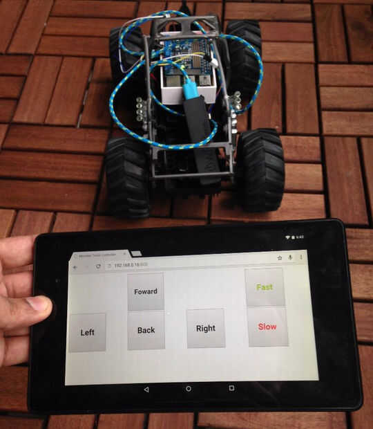 Y en un par de minutos usted debe ser capaz de probar el coche por la carga de la página web en el navegador del teléfono/tablet como se muestra en la imagen.