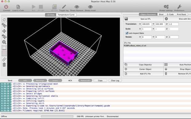 En mi caso estoy usando Repetier Host como mi software de impresión 3D con el metal Printrbot Simple y la máquina de cortar de ajustar en altura de la capa 0,2 mm.