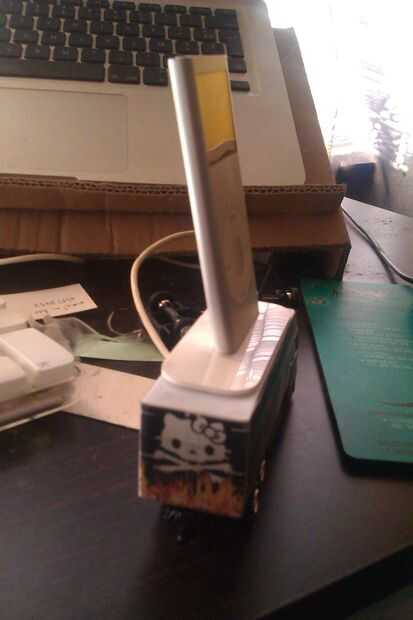 Puesto la toma con algún cartón, cortar un agujero en el lado del camión para el cable.