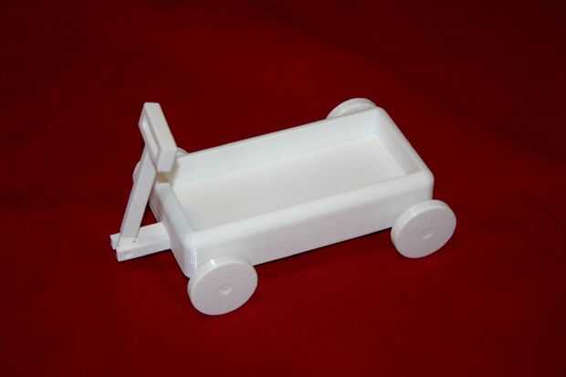 La imagen que ves es el modelo impreso en el 160% del tamaño original, sólo porque necesitaba más grande. Imprimir una "carro", dos "ejes", cuatro "ruedas de carro," uno "manillar" y una "varilla de lengua". Los ejes deben imprimirse verticalmente en una balsa. Todo lo demás muy fácil imprime sin soportes o balsas.