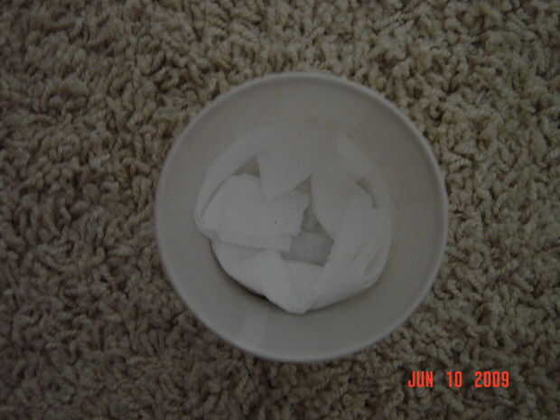 Poner un pequeño amunt de trata en el fondo de la taza de dixie. Después cubrir la trata con uno de los kleenex.