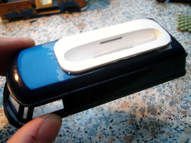 por lo tanto, estaba cansado de tener poner por iPhone en mi escritorio para la sincronización, de carga, etc., así que hice un pequeño muelle para él. It'sfaily simple, fácilmente personalizable y perfectamente funcional. Desafortunadamente no tomo