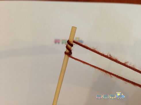 Tallar 2 líneas en cada bambú palos, atar la cuerda fina a uno de ellos en las 2 ranuras, pegamento para fija los puntos de amarre.