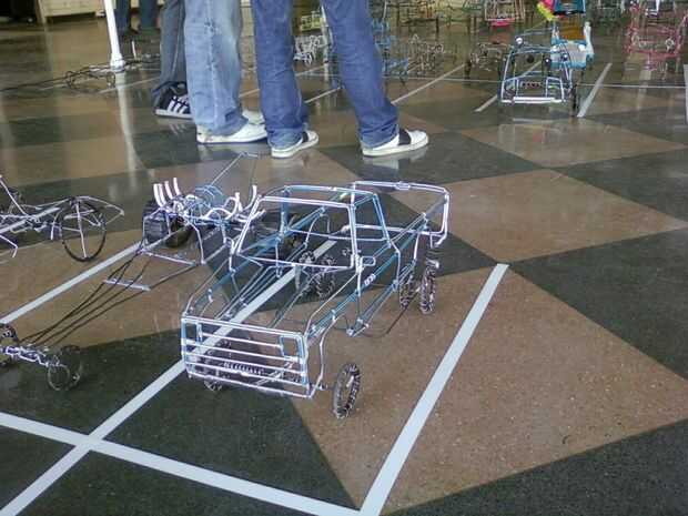 Aquí tenéis un vídeo de un coche de cable que chido encontrar en youtube. Tiene una cantidad extrema de detalle. Es un ejemplo perfecto de lo que es obtenible con alambre, tiempo y un montón de práctica.