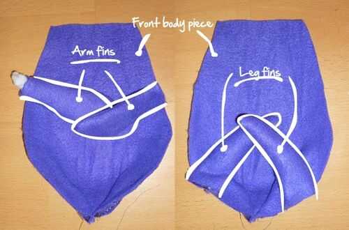 6) colocar los brazos y las piernas en uno de los trozos de cuerpo. Recomiendo bañar en este momento porque la máquina de coser va a tener problemas para conseguir a través de las aletas del brazo y la pierna.
