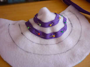 5) ahora toma la cinta y doble sobre el arco de abetos, fijando así que sigue la curva. Una vez que llegue de un extremo a otro, cortó la cinta. Te sugiero hacer uno a la vez, ya que he intentado hacer dos y acabó me pinchando.