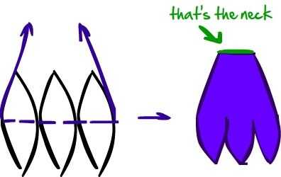 3) al llegar a un punto donde crees que la parte del cuello sería lo suficientemente amplia, parar y conectar los dos lados.